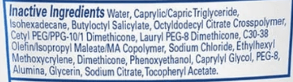 Butyloctyl salicylate: Skin-softening ingredient that boosts the effectiveness of sunscreen.