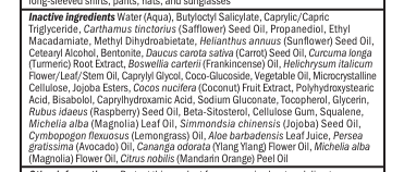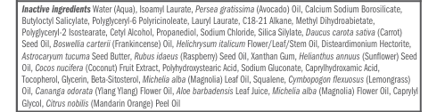 Inactive ingredients: purified water, caprylic/capric triglyceride, polyglyceryl-4 isostearate, glycerin, hydrogenated glyceryl abietate, hexyl laurate, cetyl dimethicone, sorbitan sesquioleate, magnesium sulfate, tocopherol, sodium hyaluronate, helianthus annuus (sunflower) seed oil, simmondsia chinensis (jojoba) seed oil, olea europaea (olive) fruit oil, citrus paradisi (grapefruit) peel oil, vaccinium macrocarpon (cranberry) seed oil, rubus idaeus (raspberry) seed oil, carica papaya (papaya) fruit extract, hydrogenated castor oil, caprylhydroxamic acid, triethoxycaprylylsilane, glyceryl caprylate, natural fragrance oil.