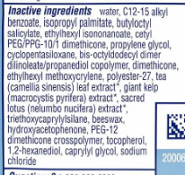 Inactive ingredients: aloe barbadensis leaf (aloe vera gel) juice, aqua (deionized water), butyrospermum parkii (shea) butter, caprylic/capric triglyceride, citric acid, glycerin, glyceryl caprylate, glyceryl stearate citrate, glyceryl undecylenate, hydrolyzed jojoba esters, lecithin, polyhydroxystearic acid, tocopherol (vitamin e), tridecyl salicylate, xanthan gum.